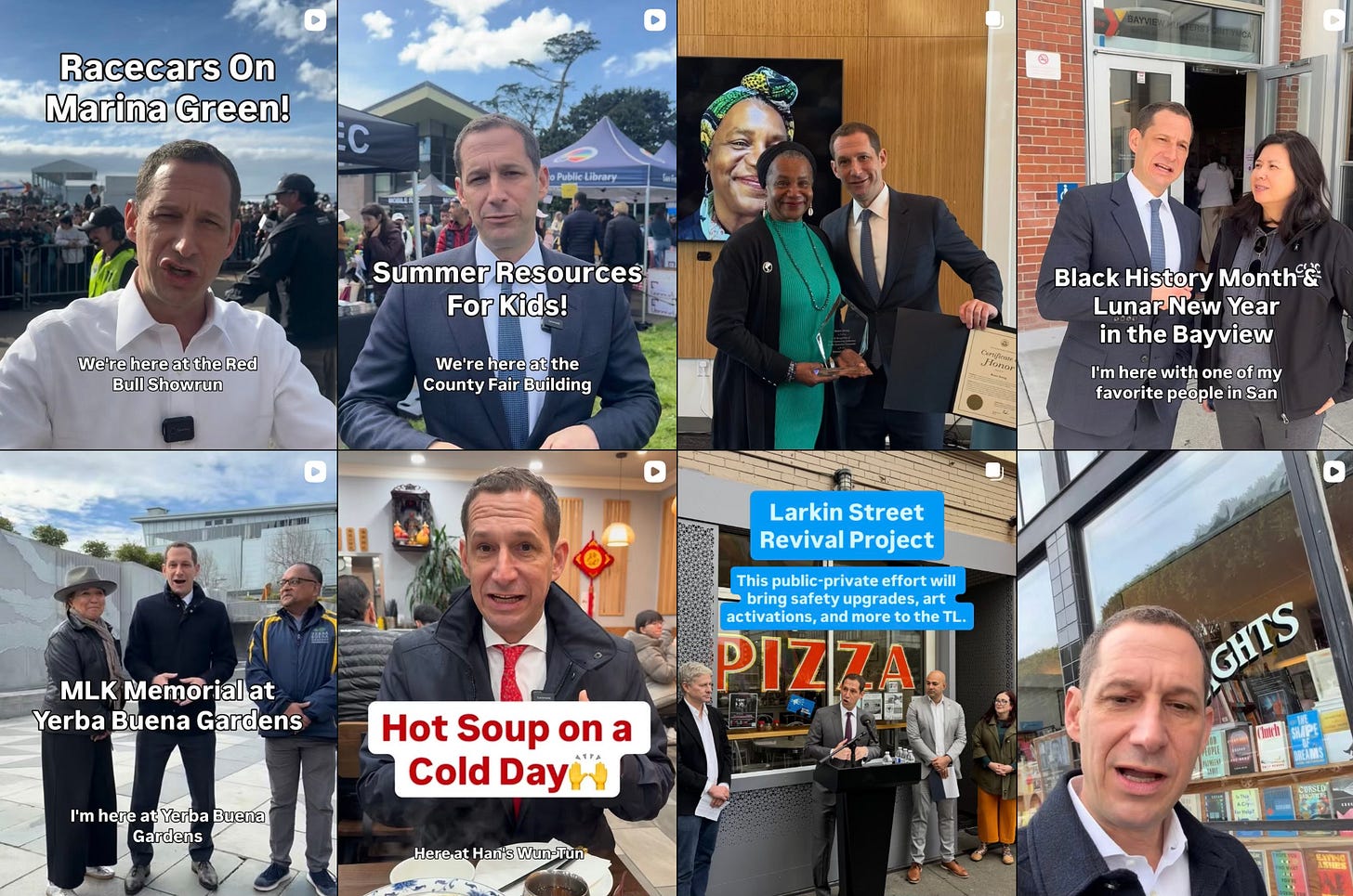 Since his election, it has become something of a running joke in San Francisco that Lurie is everywhere. In his dorky yet endearing little-league-coach style, he is often seen walking around the streets of Chinatown or Union Square visiting local restaurants, cheering on the opening of a new Nintendo store, or talking about services for the homeless. All of this is posted throughout the day to his Instagram story, which can accumulate well over a dozen videos a day packed with phrases like “San Francisco is back” and “let’s go San Francisco!” Some videos tackle issues that would have made SF liberals uncomfortable just a few years ago. I distinctly remember watching a clip (which Lurie reposted) showing footage of illegal dirt bikes from a police surveillance drone, culminating in a scene of police officers ambushing the culprits at a gas station and putting them in cuffs. The unmistakable message is: “my administration will enforce the law.” And whatever you think of his politics, it’s working—Lurie is popular in SF, and ended his first year in office with an approval rating above 70%.